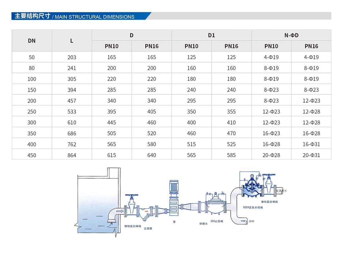 900X緊急關(guān)閉閥,是一種用于消防用水與生活用水并聯(lián)的供水系統(tǒng)中,用來調(diào)配供水方向的閥門。當火災發(fā)生時,消防急需大量用水,900X緊急關(guān)閉閥立即切斷生活用水,確保足夠的消防用水:當消防停止用水壓力減小時,閥門自動打開,呈常開狀態(tài),恢復生活供水。該閥使系統(tǒng)無須另設(shè)專門的消防單獨供水管網(wǎng),大大地節(jié)約了建設(shè)成本和用水量。閥門控制靈敏度高,安全可靠,調(diào)試簡便,使用壽命長。