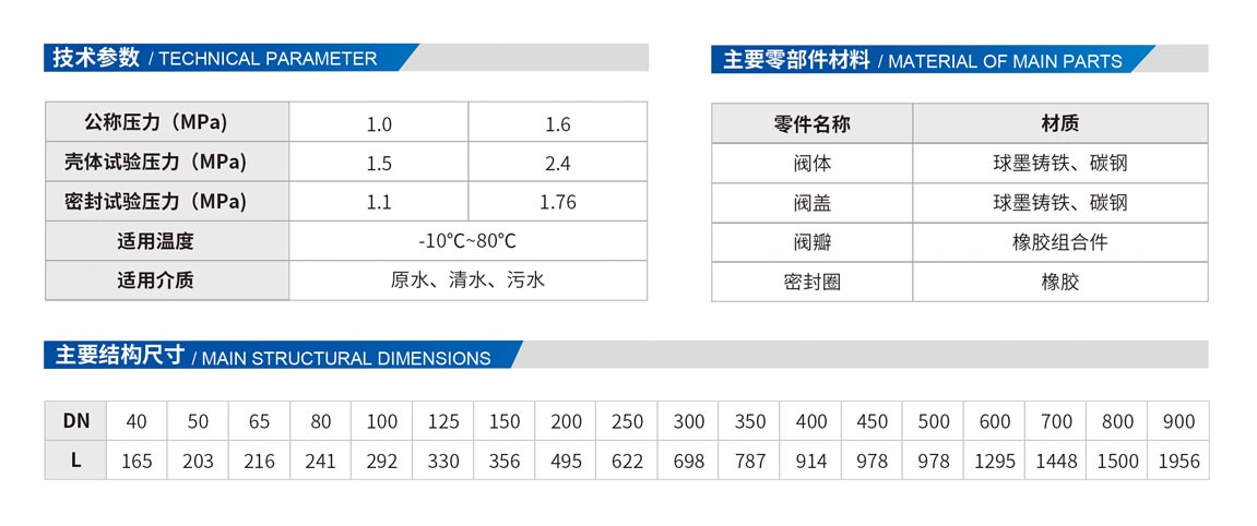 采用全流面積式設(shè)計,水頭損失小,不易堆積雜物,密封采用斜板式設(shè)計,關(guān)閉行程短,閥瓣采用橡膠與鋼板經(jīng)高溫壓制而成,耐沖涮,密封性能好,產(chǎn)品結(jié)構(gòu)簡單、維護(hù)和保養(yǎng)方便。
